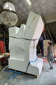 Sculpting and Scenic team: Seren Noel, Jodie Yates, Chloe Stoakes, Rhianna Yates, Eve Wilson. The project included polycarving, assembling on site, rendering with concrete and copper cladding